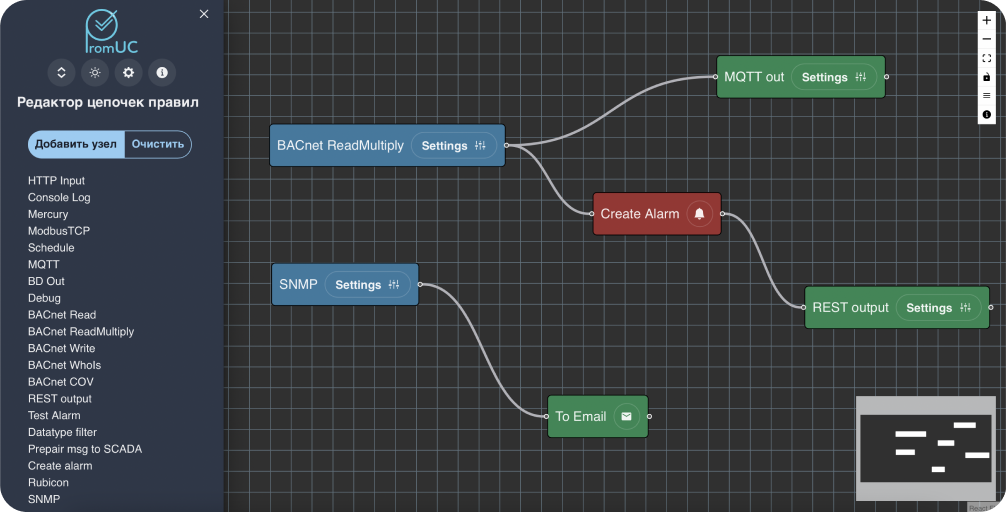 Интеграция различных протоколов и устройств под общее управление и создания рабочих процессов на основе событий.